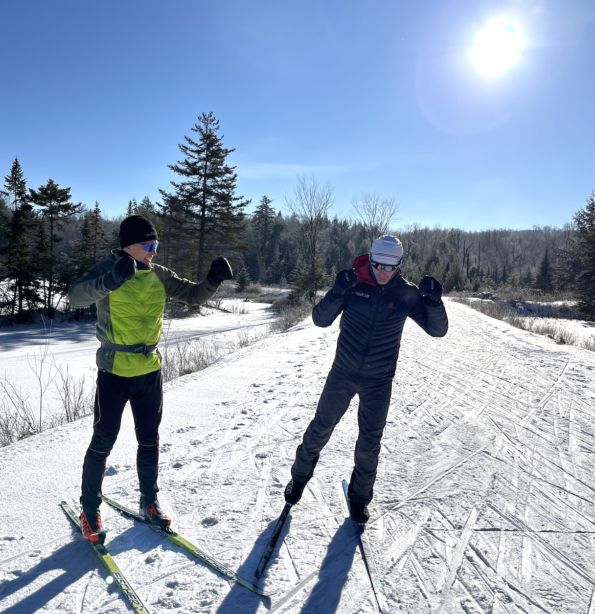 Sessions d’entraînement technique de groupe pour améliorer votre style en ski de fond classique et pas de patin.